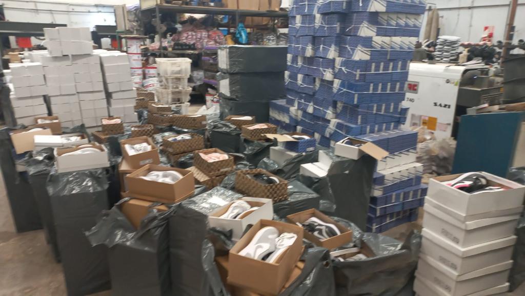 Se allanó un taller clandestino en Gregorio de Laferrere, donde encontraron a 15 personas trabajando en la confección de calzado deportivo con modelos similares a los de primeras marcas. Se incautaron miles de pares de zapatillas y otros materiales, valuados en el “mercado” en más de 32 millones de pesos