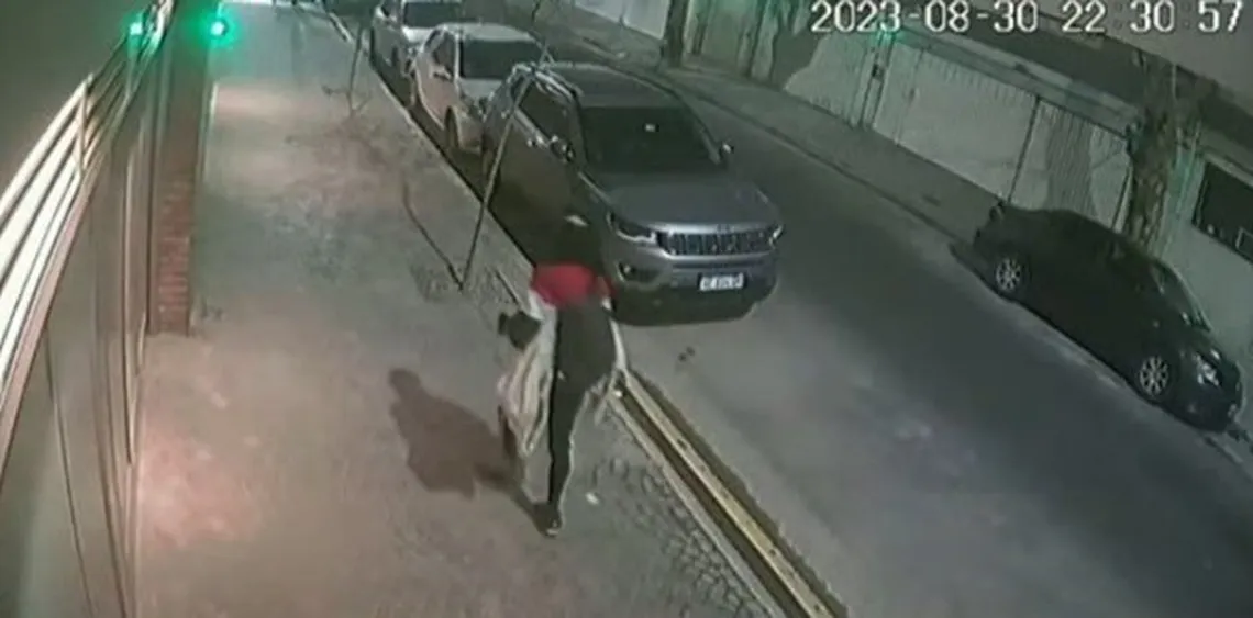 La fuga quedó registrada en video, a partir de las 22.55, por la calle Chonino, donde varias cámaras de la entrada del garaje del shopping Paseo Alcorta lo toman caminando tranquilamente cargando la bolsa tipo saco sobre sus hombros y pasando delante de un volquete.