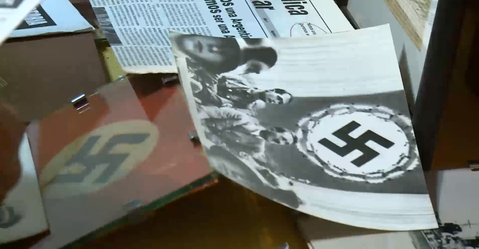 El hallazgo dio lugar a la intervención de la Policía Federal Argentina, que constató, entre otros objetos, un rifle, un cuadro de Adolf Hitler y libros de su autoría, diferentes publicaciones y video cassettes que hacen referencia a la negación del Holocausto.
