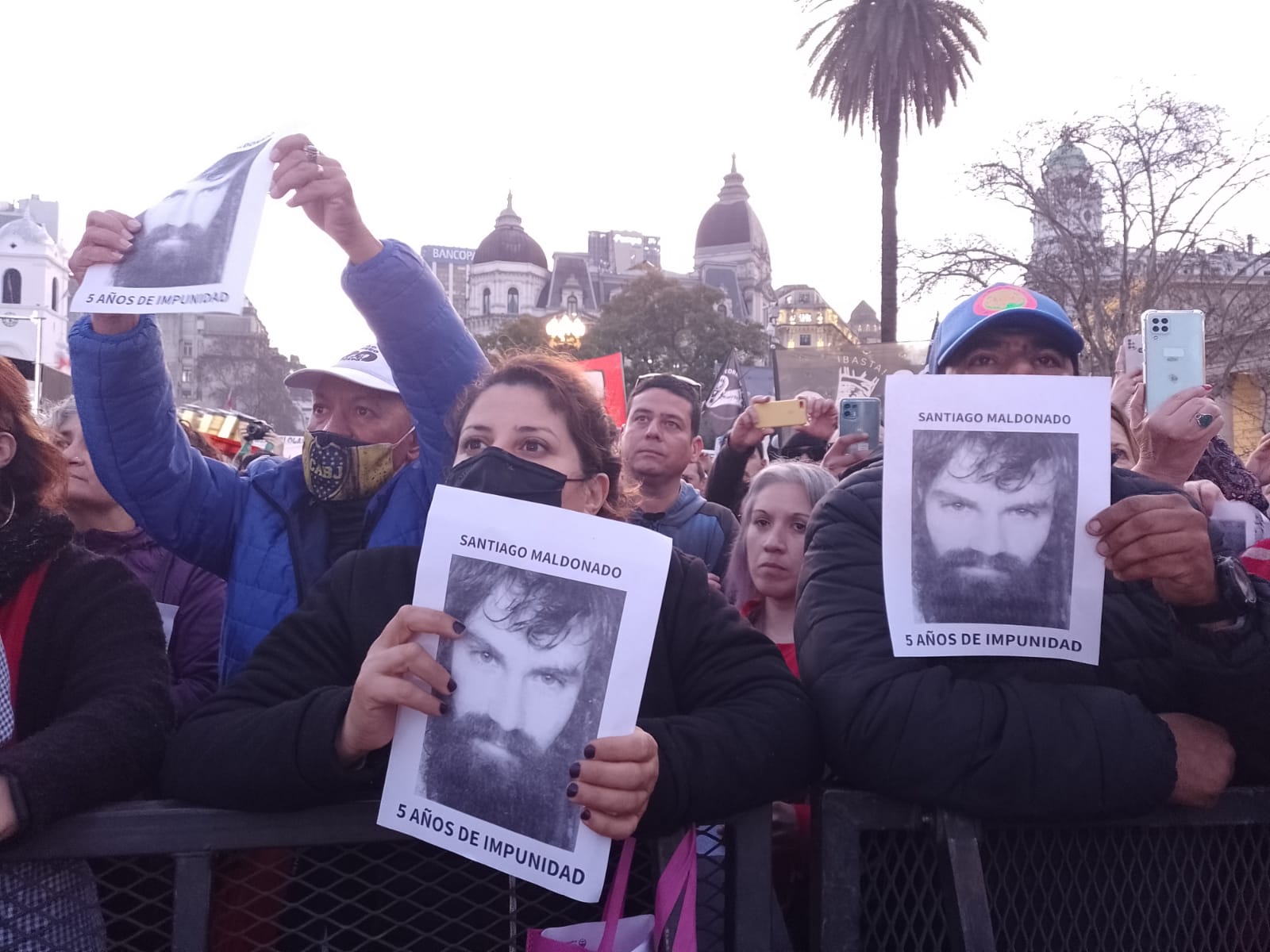 Al grito de ¡Santiago Maldonado presente!, Plaza de Mayo, la plaza del pueblo comenzó a llenarse de jóvenes, organización sociales, políticas y de derechos humanos que a cinco años de su desaparición exigen justicia.