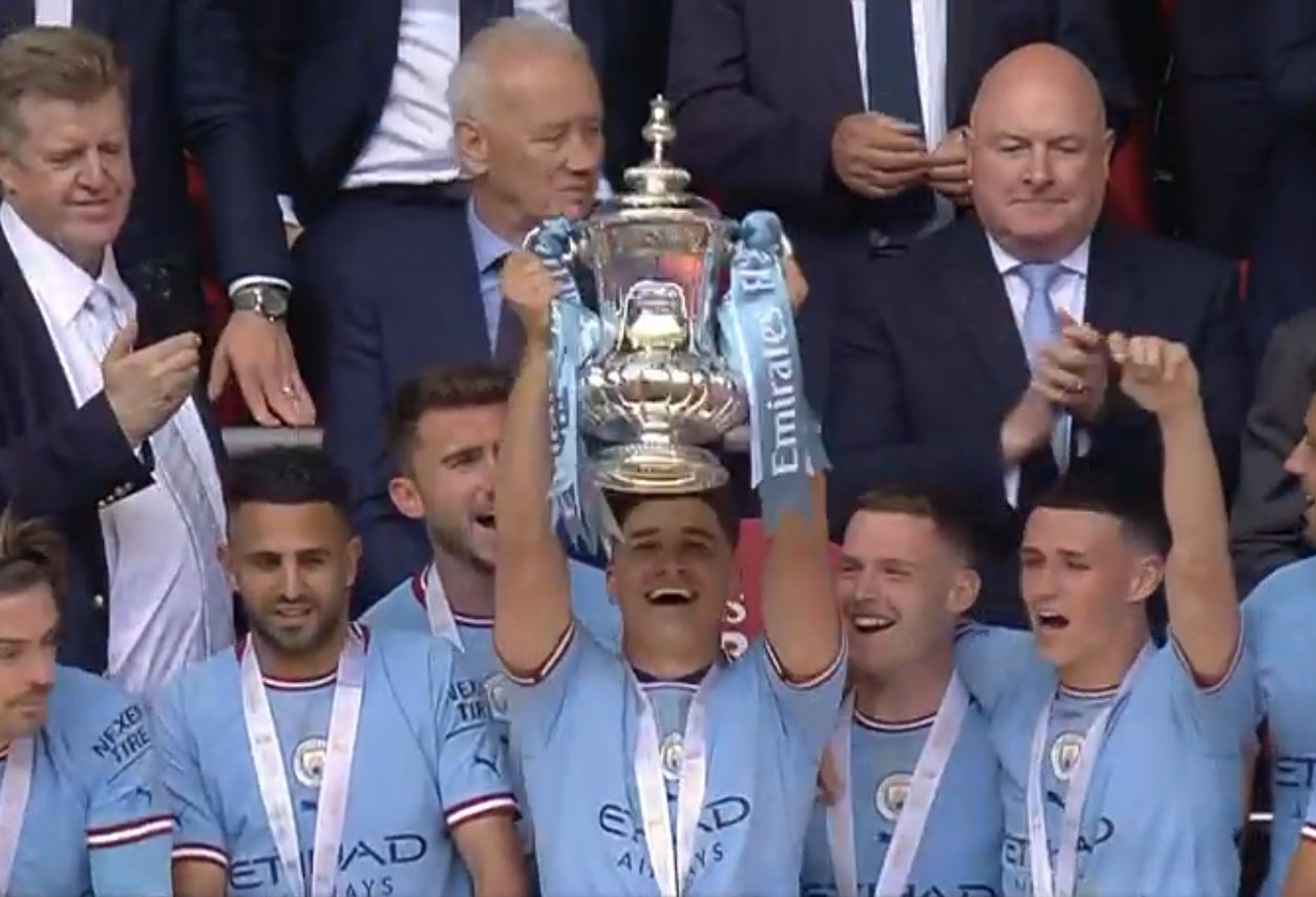 Manchester City se consagró hoy campeón de la FA Cup de Inglaterra con una victoria de 2-1 sobre su máximo rival, Manchester United, en la final disputada ante 83.179 espectadores en el estadio Wembley, donde el argentino Julián Álvarez permaneció sentado en el banco de suplentes.