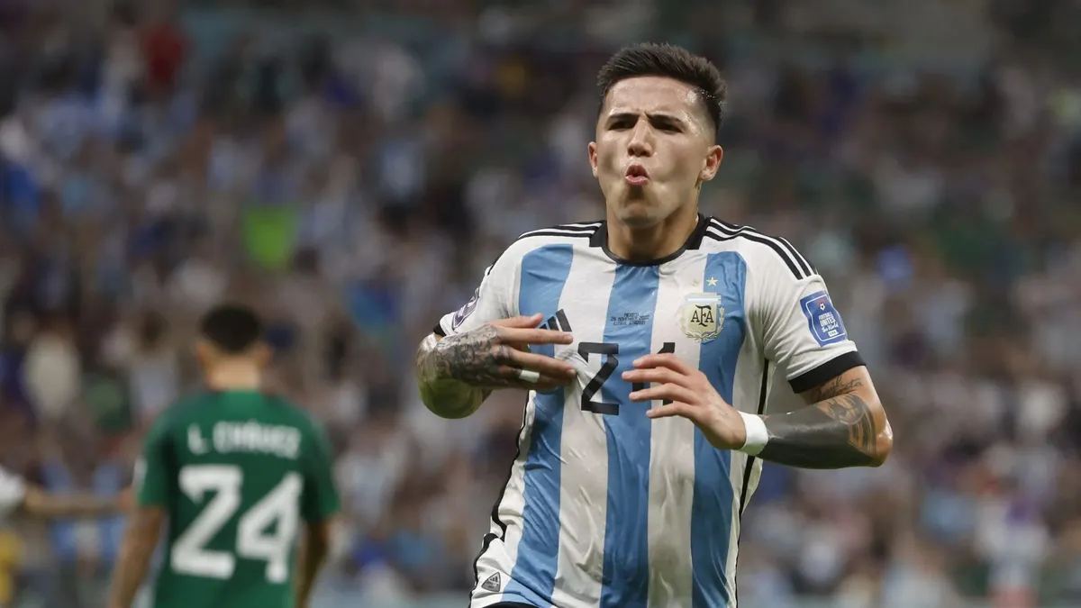 El mediocampista Enzo Fernández llegó este domingo al país para sumarse al seleccionado argentino de cara al inicio de las Eliminatorias Sudamericanas para el Mundial 2026.