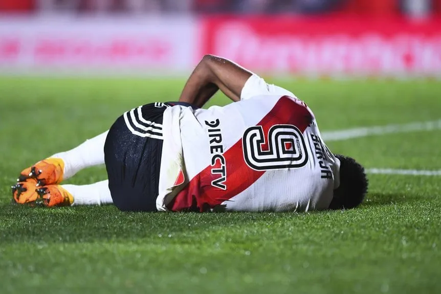 El delantero colombiano Miguel Borja no estará en condiciones de ser parte de la convocatoria de River Plate para jugar frente a Rosario Central en las semifinales de la Copa de la Liga debido a su desgarro en el aductor derecho.