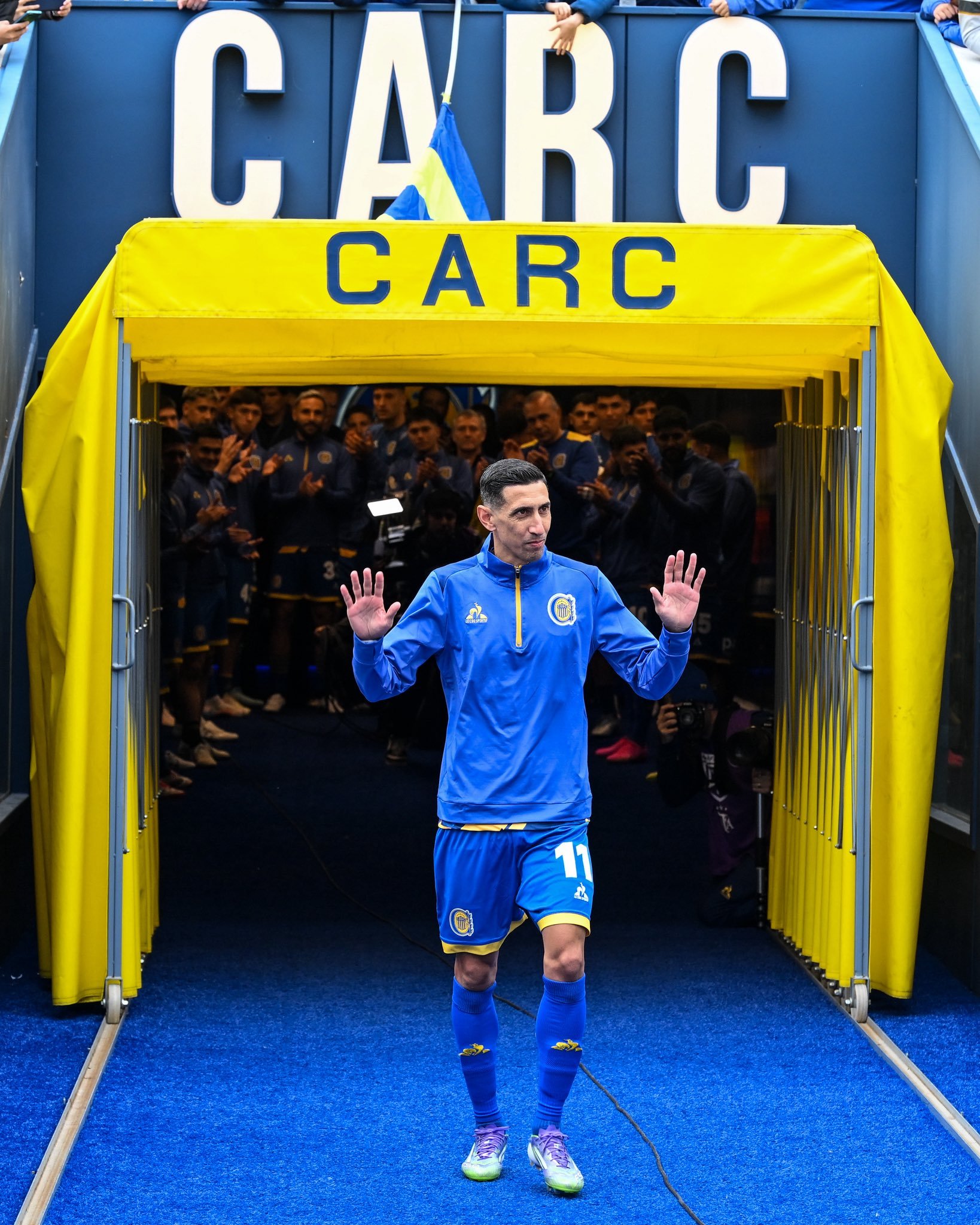 El Gigante fue una verdadera fiesta desde el primer momento. Cada rincón del estadio se llenó de color y cánticos para dar la bienvenida a una de sus figuras más representativas. Di María no pasó desapercibido: al pisar el césped, levantó los brazos para saludar a los presentes.