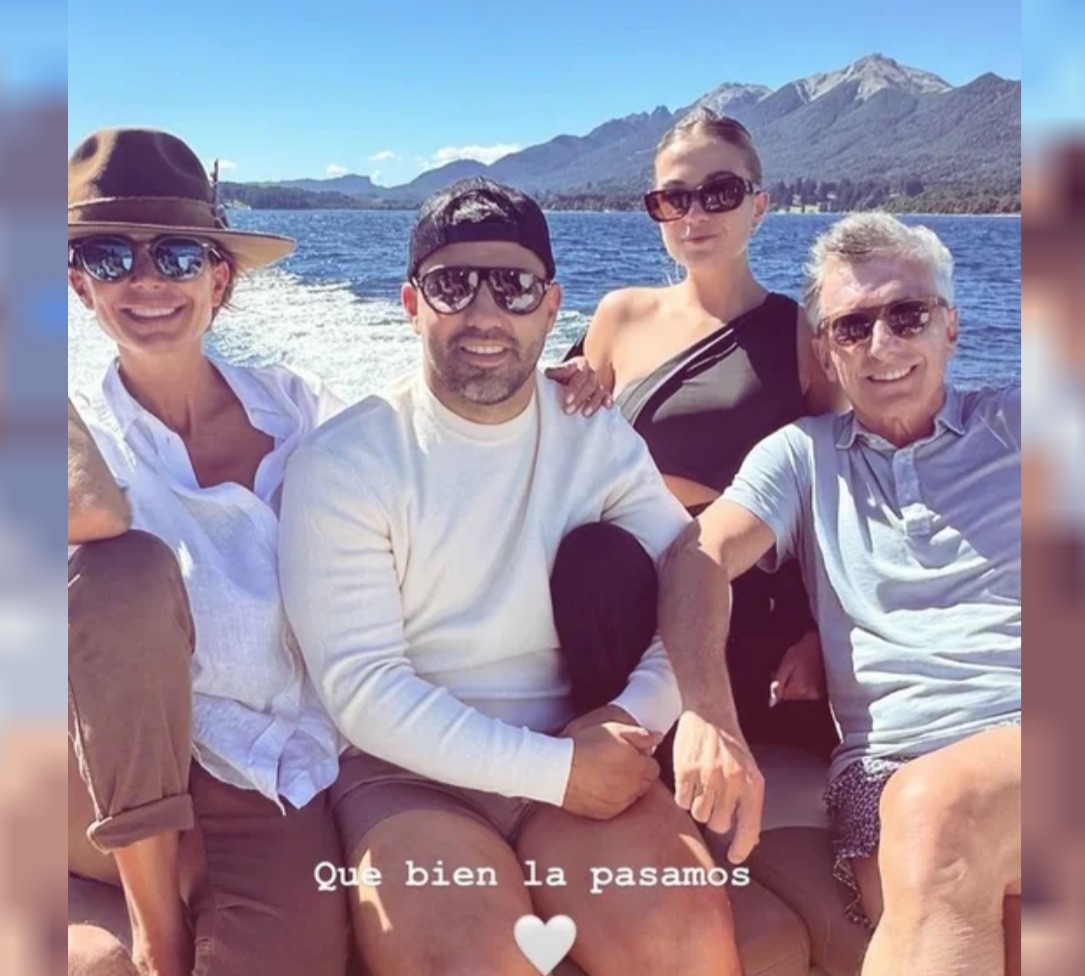 Juliana Awada, ex primera dama, compartió imágenes del encuentro en redes sociales. La familia del Kun y la de Macri realizaron una excursión en lancha por el lago Nahuel Huapi.