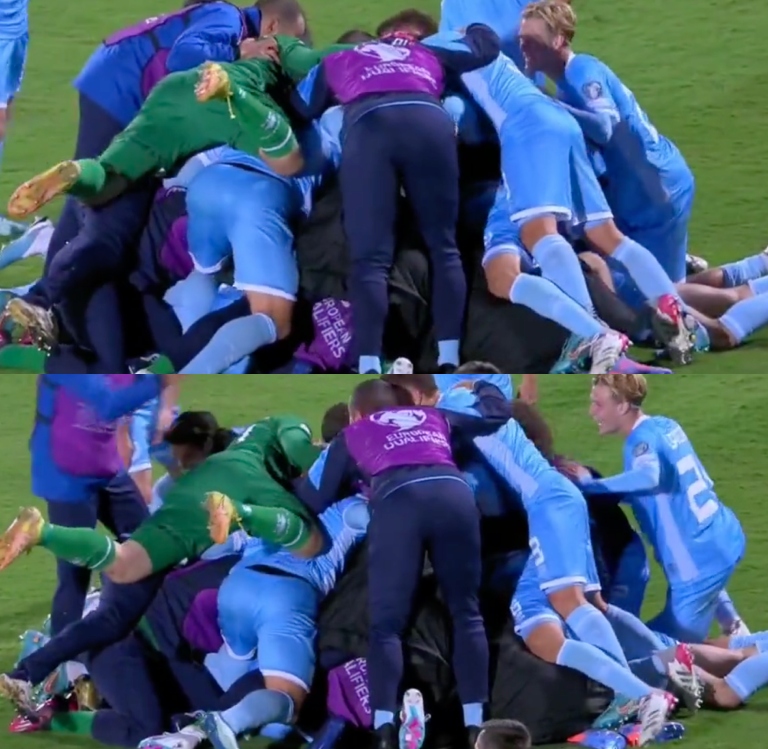 La anotación de Golinucci (ST 15m) fue el empate parcial ante Dinamarca, 18va. del ranking FIFA, y el plantel de San Martino lo celebró de manera alocada, como si hubiese logrado un título. Por supuesto, significó su primer gol en el grupo H de las Eliminatorias para la Eurocopa 2024, donde se posiciona último sin unidades.
