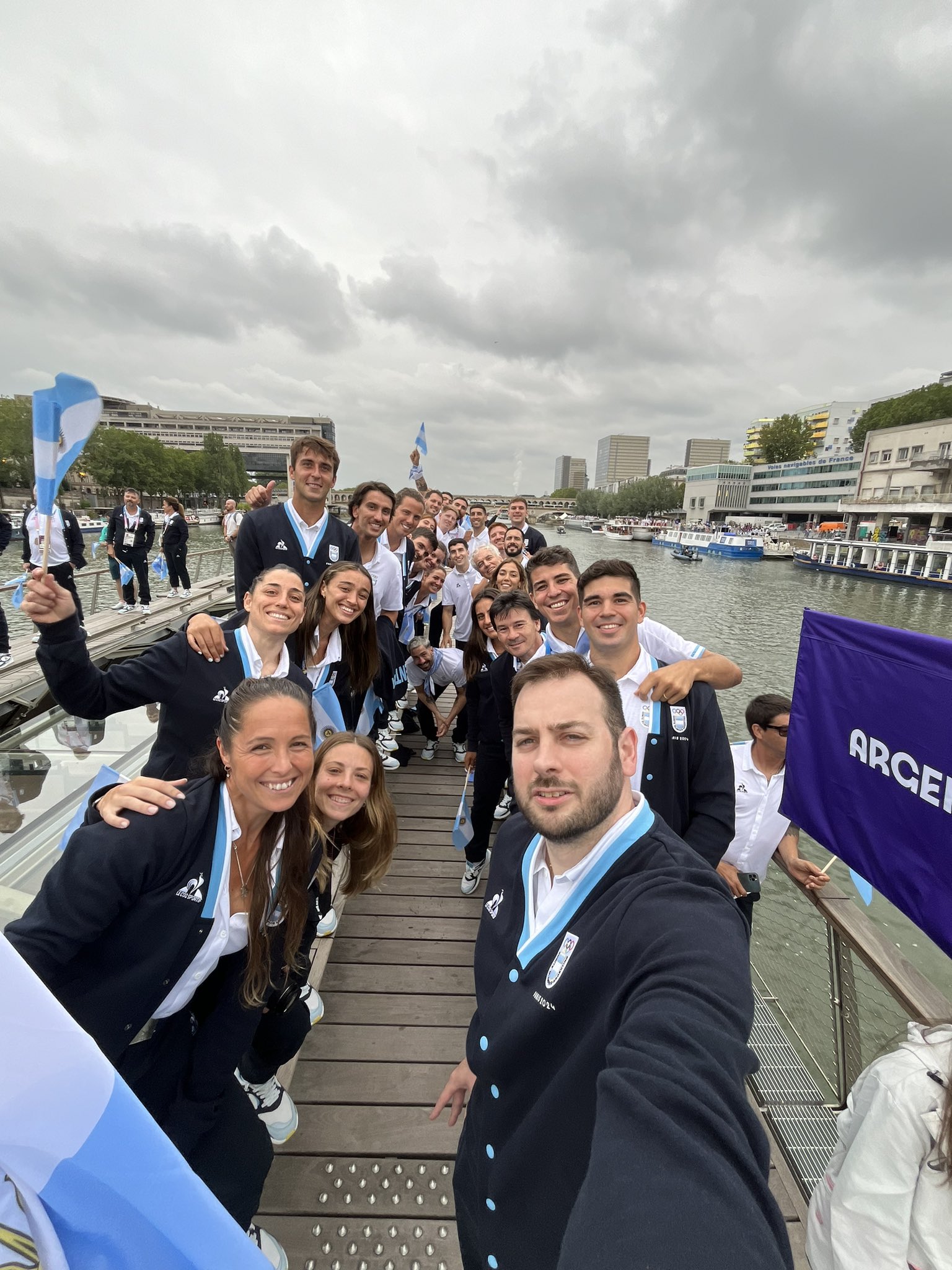 De Cecco, capitán del equipo nacional de vóley, obtuvo la medalla de bronce en Tokio 2021 y participó en su cuarta Olimpiada. Parte de los 136 deportistas argentinos, que competirán en 25 disciplinas, apareció en el Río Sena tras la delegación de Arabia Saudita, con el tradicional color y alegría, cantando «vamos vamos, Argentina».