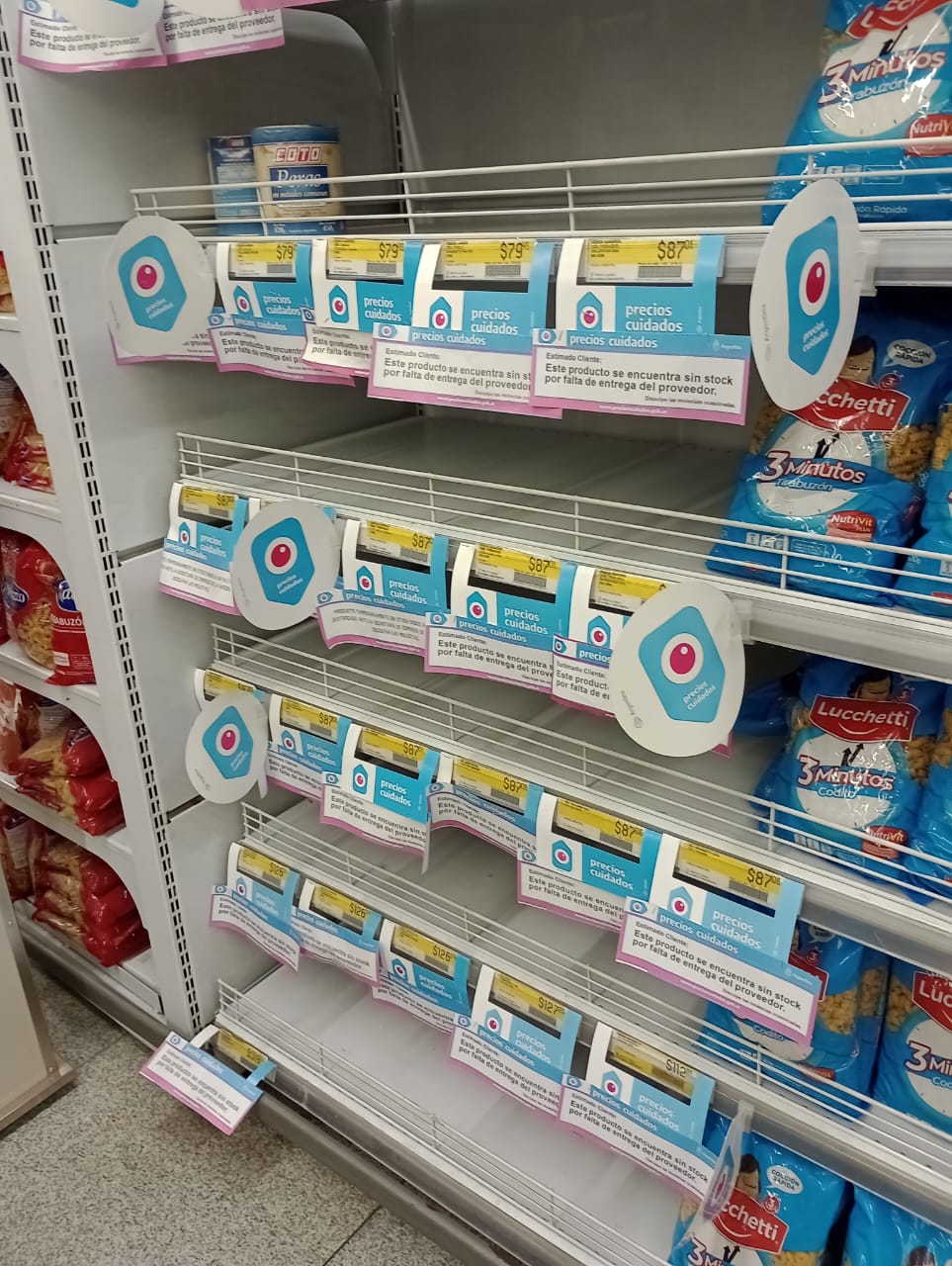 Y el párrafo aparte que se repite para el programa Precios Cuidados, el de acuerdo de precios entre el gobierno nacional y los empresarios. La oferta es más que escasa, en general, las góndolas de los productos de Precios Cuidados están vacías.
