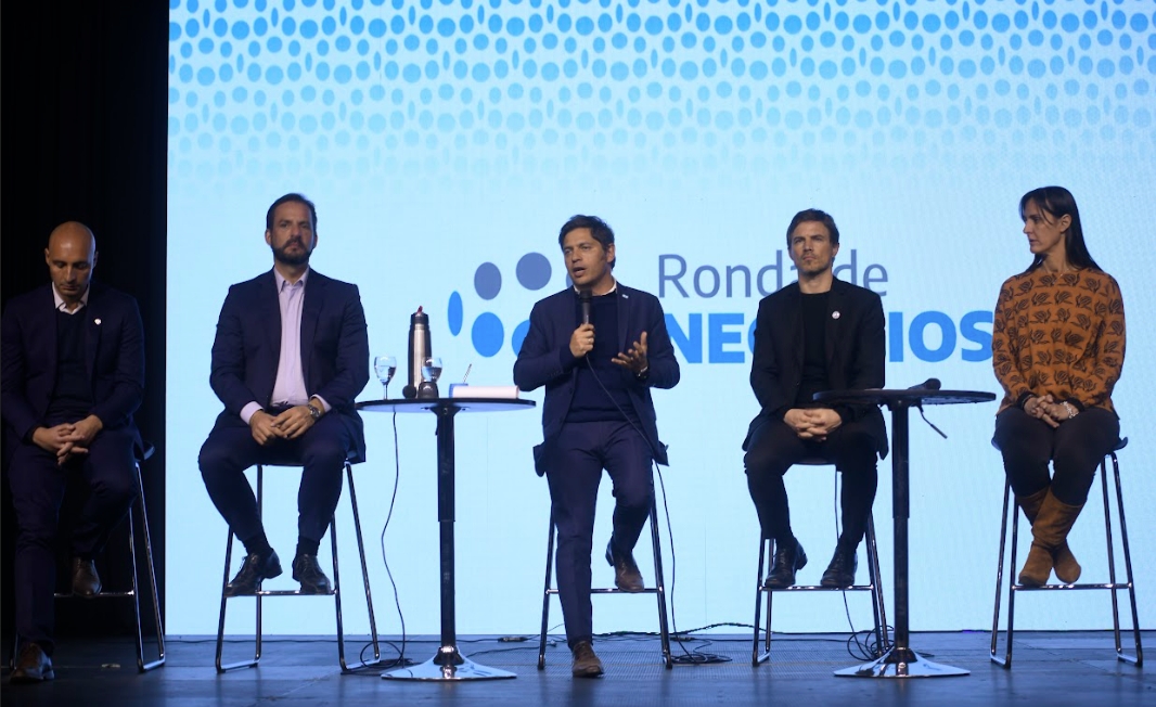 El gobernador de la provincia de Buenos Aires, Axel Kicillof, encabezó esta tarde el cierre de la Séptima Ronda de Negocios, que se llevó a cabo en el marco de Expo Escobar 2022 con la participación de más de 130 representantes del sector productivo bonaerense. Fue junto al ministro de Producción, Ciencia e Innovación Tecnológica, Augusto Costa; el presidente del Ente Nacional de Control y Gestión de la Vía Navegable, Ariel Sujarchuk; el intendente, Carlos Ramil; y la secretaria local de Hacienda, Guillermina Capomasi.