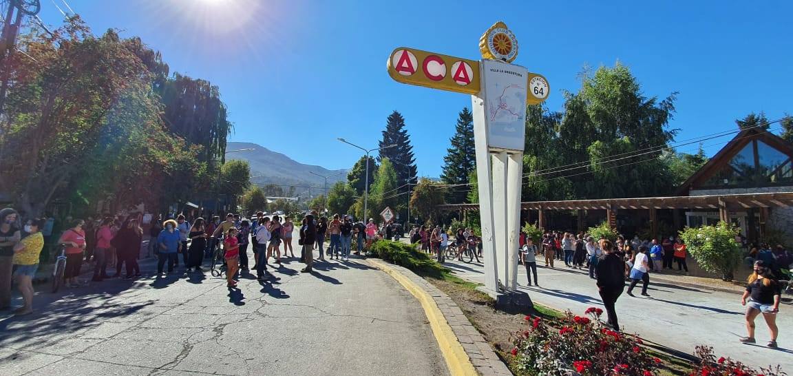 Un grupo de vecinos, vecinas y militantes de agrupaciones feministas y contra la violencia de género pedían este mediodía justicia por el femicidio de Guadalupe Curual frente a la fiscalía de Villa La Angostura, donde además le reclamaron la renuncia al fiscal de la causa.