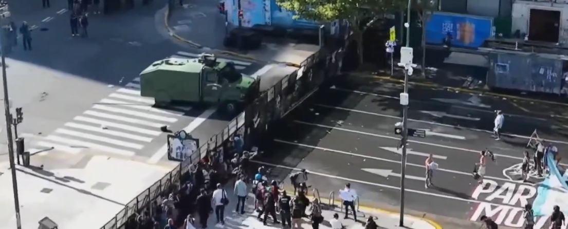 Este jueves, ciudadanos que se manifestaban sobre la avenida Rivadavia frente al Congreso de la Nación Argentina por la reforma laboral sufrieron una intervención violenta de la Gendarmería Nacional Argentina. Mientras intentaban acercarse a las vallas, que limitan su derecho a expresar su voz, las fuerzas de seguridad lanzaron chorros de agua de carros hidrantes para dispersarlos.