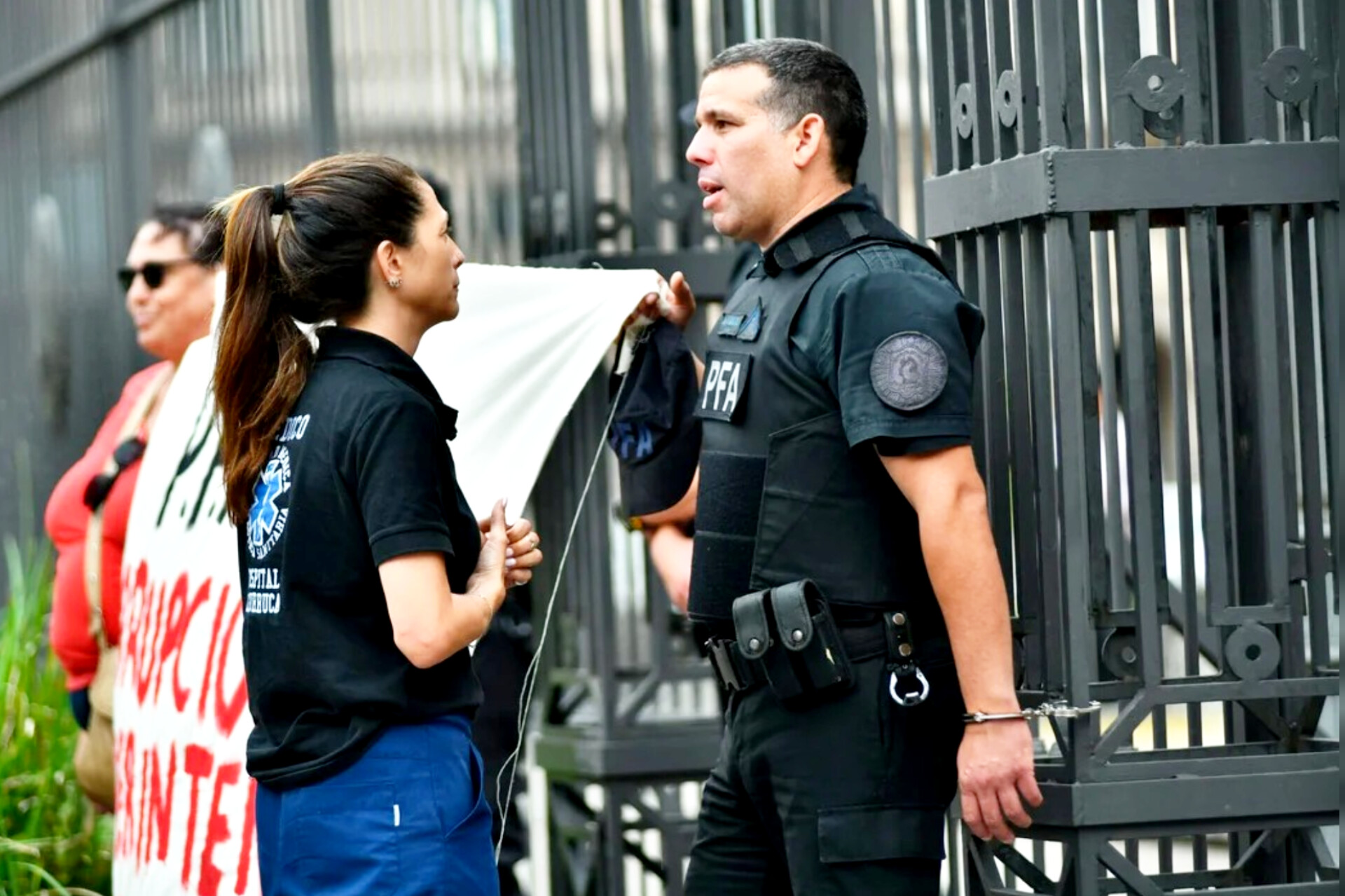 Tras encadenarse en Casa Rosada, cabo de la Federal señaló a un comisario por corrupción