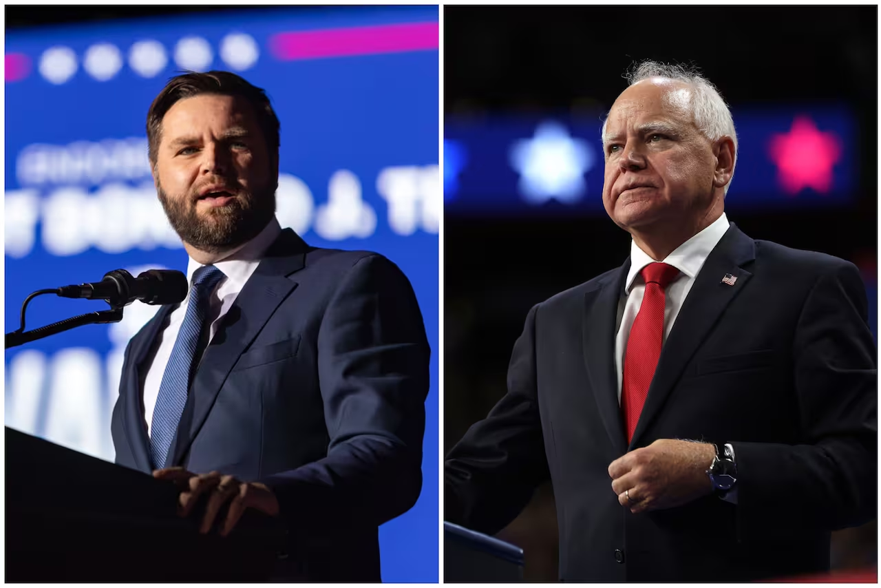 Tim Walz, actual gobernador de Minnesota con dos mandatos, y JD Vance, senador novato de Ohio, se enfrentarán para defender a sus compañeros de fórmula: la vicepresidenta Kamala Harris y el expresidente Donald Trump. Las encuestas reflejan una contienda ajustada entre Harris y Trump, lo que destaca la relevancia de este debate entre los aspirantes a la vicepresidencia.