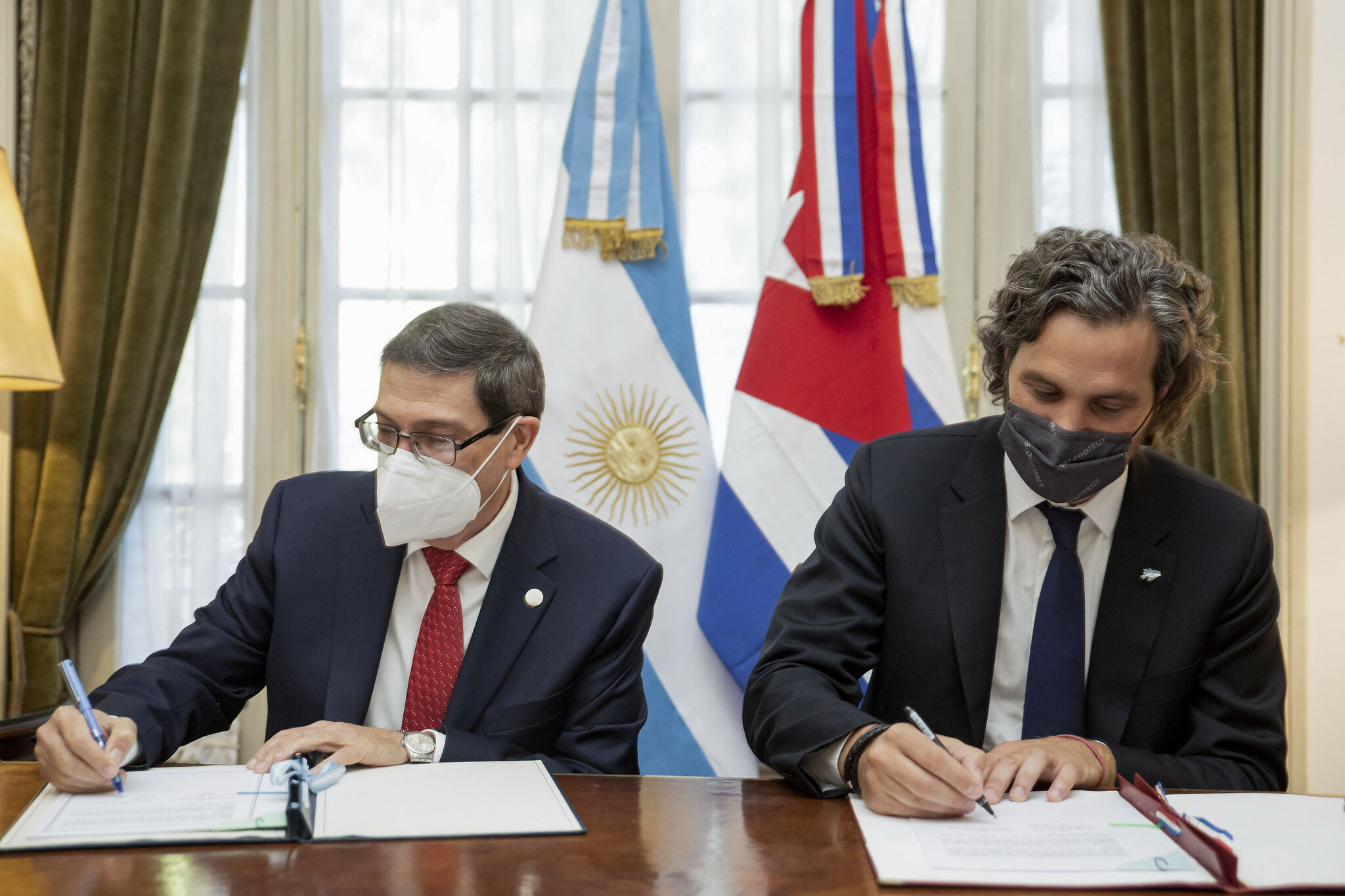 El canciller Santiago Cafiero, acompañado por el nuevo secretario de Agricultura, Matías Lestani, y su par de Cuba, Bruno Rodríguez Parrilla, suscribieron hoy un Acuerdo bilateral de Cooperación para el Desarrollo Agrícola.