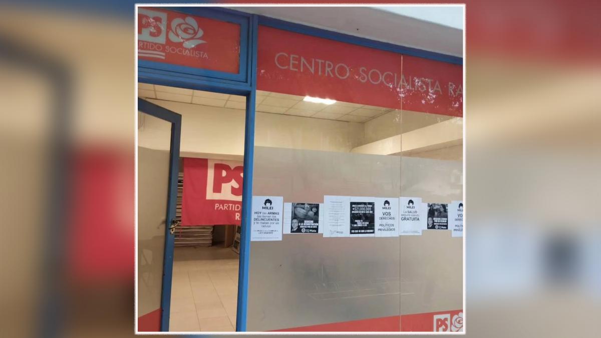 El Centro Socialista de la ciudad santafesina de Rafaela repudió como “un claro acto de intolerancia” la vandalización de local partidario con carteles y mensajes de apoyo al candidato presidencial de La Libertad Avanza (LLA), Javier Milei, informaron fuentes partidarias.