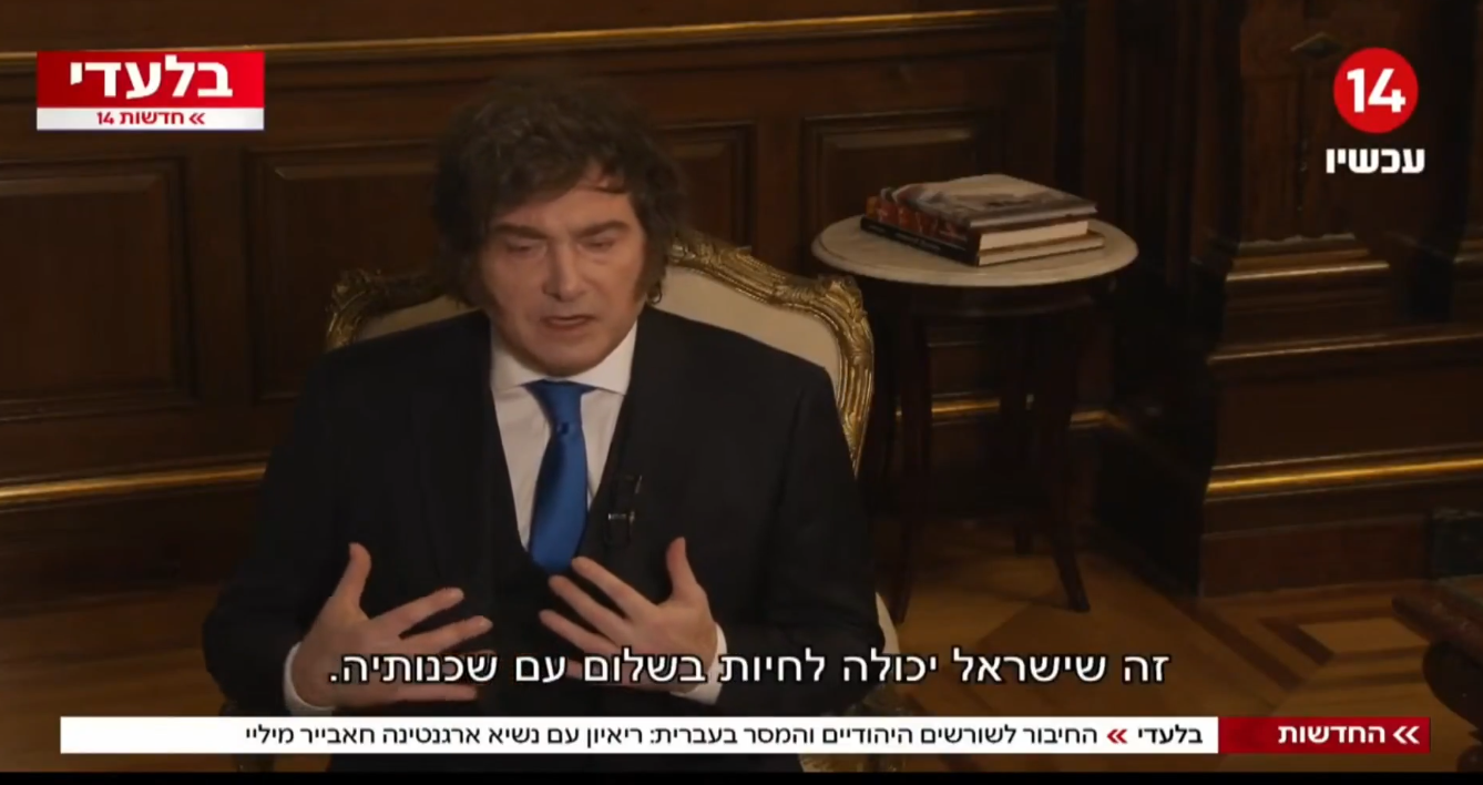 El presidente Javier Milei volvió a expresar su alineamiento con Israel durante una entrevista televisiva en la que sostuvo: “No especulo con Israel, es una causa justa”.