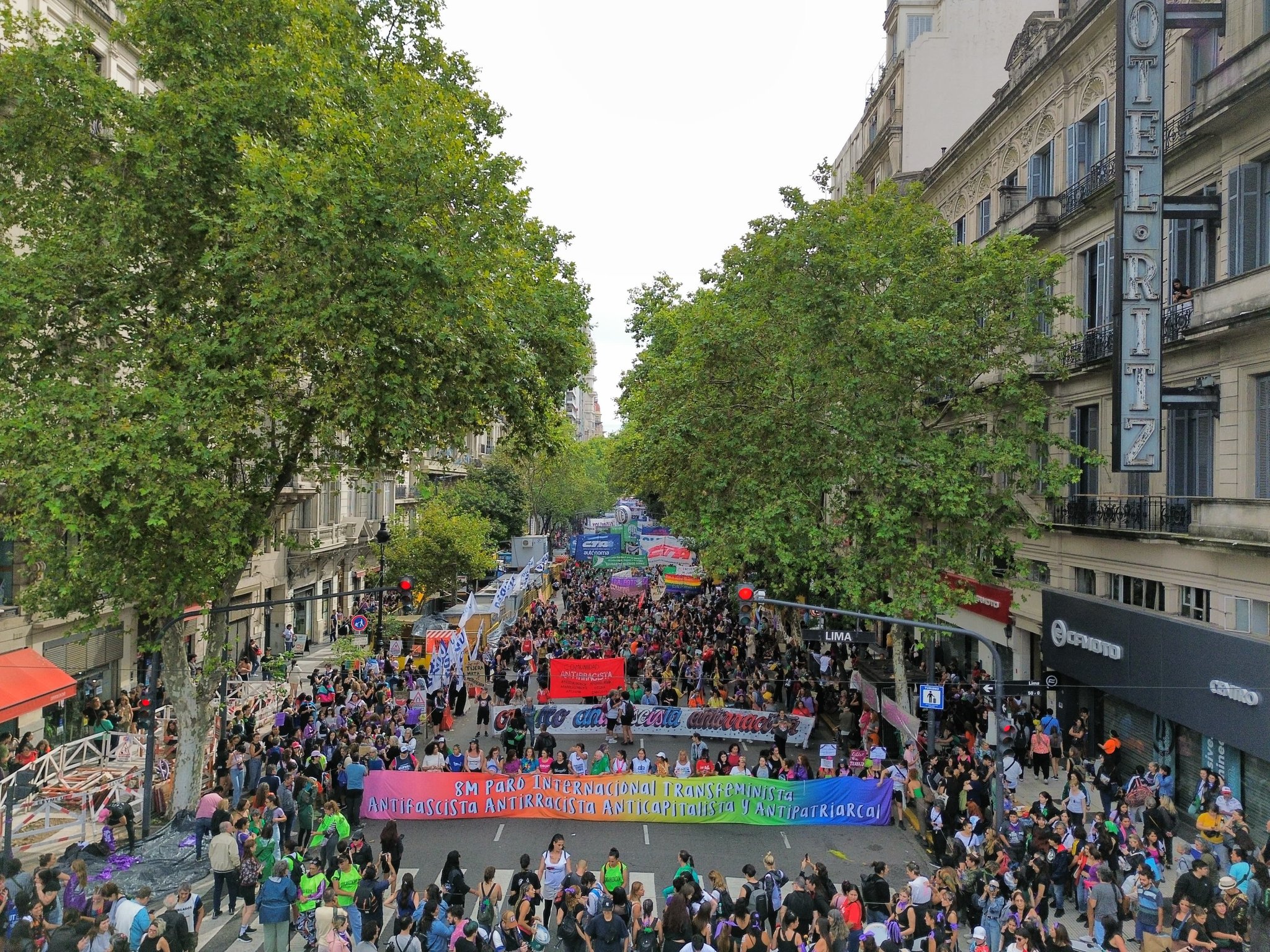Este 8 de marzo, Día Internacional de la Mujer, las calles de Argentina fueron escenario de una masiva protesta que tuvo su epicentro en la Ciudad de Buenos Aires. La marcha, que comenzó en el Congreso de la Nación, avanzó hacia Plaza de Mayo, reunieron a mujeres y disidencias de diferentes sectores sociales, sindicales y feministas. Con la consigna “Paro internacional transfeminista, antirracista, antifascista, antipatriarcal y anticapitalista”, los manifestantes exigieron el cese de los recortes de programas y políticas públicas que afectan a la lucha contra la violencia de género y la desigualdad.