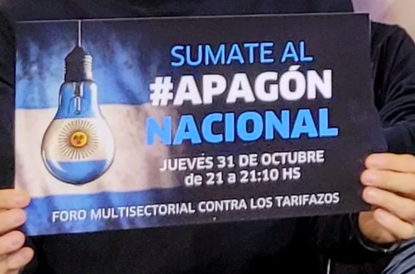 Un amplio frente multisectorial, integrado por pymes, comerciantes, universidades, inquilinos, jubilados, espacios culturales y clubes de barrio, convocó a un apagón nacional como medida de protesta contra los «aumentos desmedidos» de las tarifas energéticas implementados por el gobierno de Javier Milei. La acción, que busca expresar el repudio de la población a las políticas económicas del gobierno, se realizará el jueves 31 de octubre de 21 a 21:10 horas.
