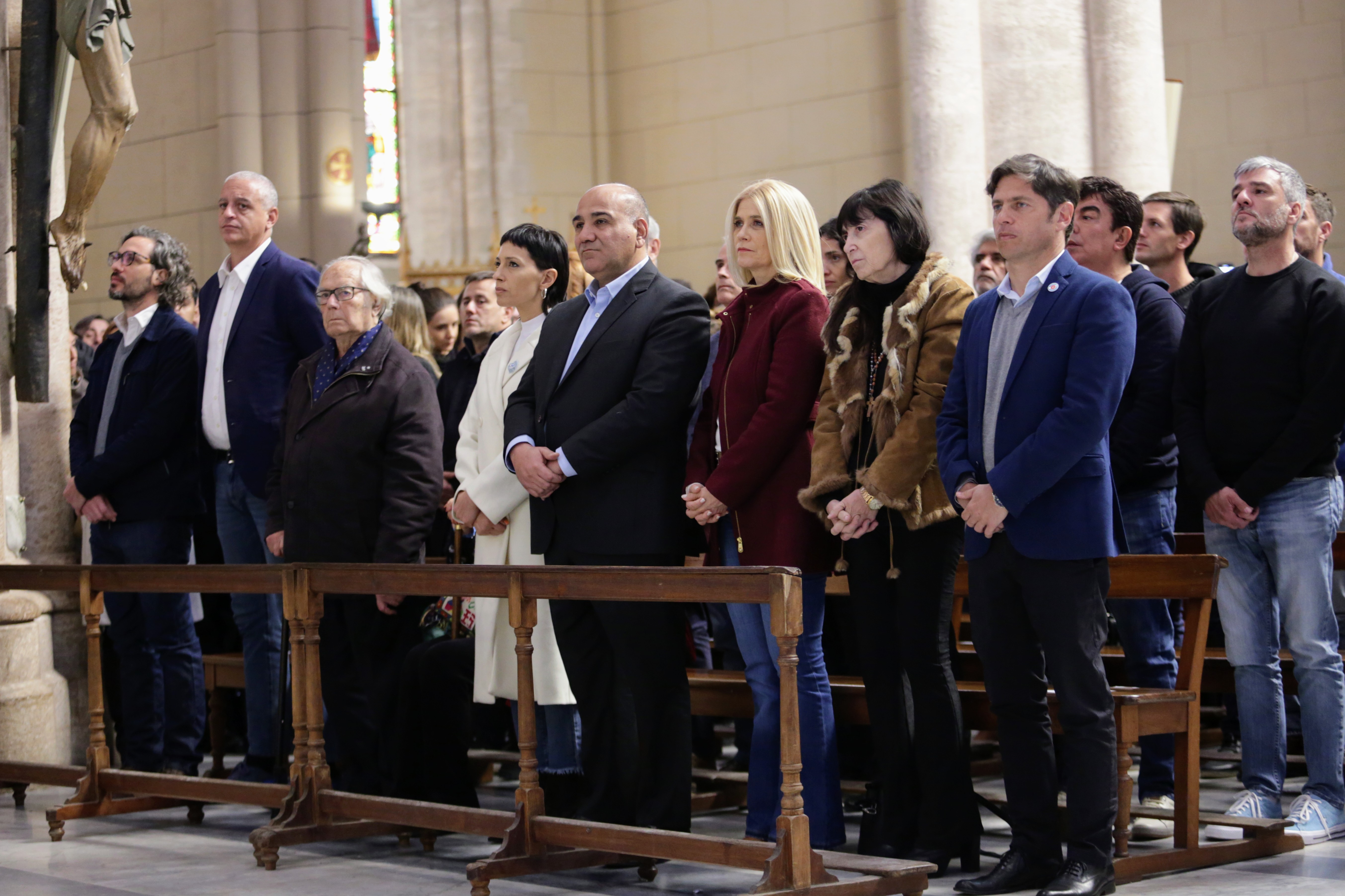 En la primera banca de la Basílica también estaban el ministro del Interior, Eduardo «Wado» De Pedro; el intendente de Luján, Leonardo Boto -gestor de la convocatoria-, y la presidenta de la Cámara de Diputados, Cecilia Moreau.