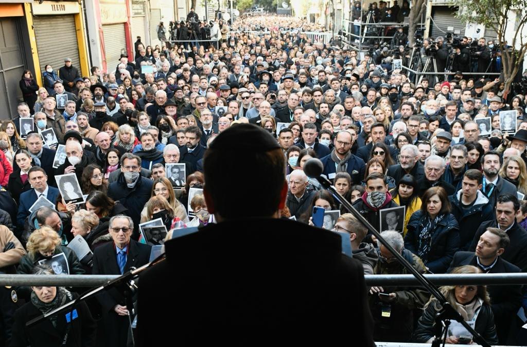 Al encabezar el acto central por el aniversario número 28 del atentado terrorista, el primero presencial tras la pandemia de coronavirus, Linetzky afirmó que «es muy difícil explicar todo lo que no pasó durante estos 28 años».