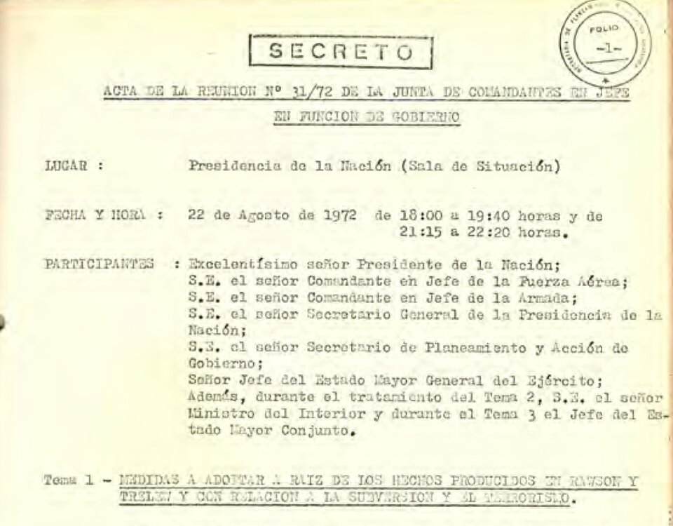 El Gobierno desclasifica actas de la Masacre de Trelew