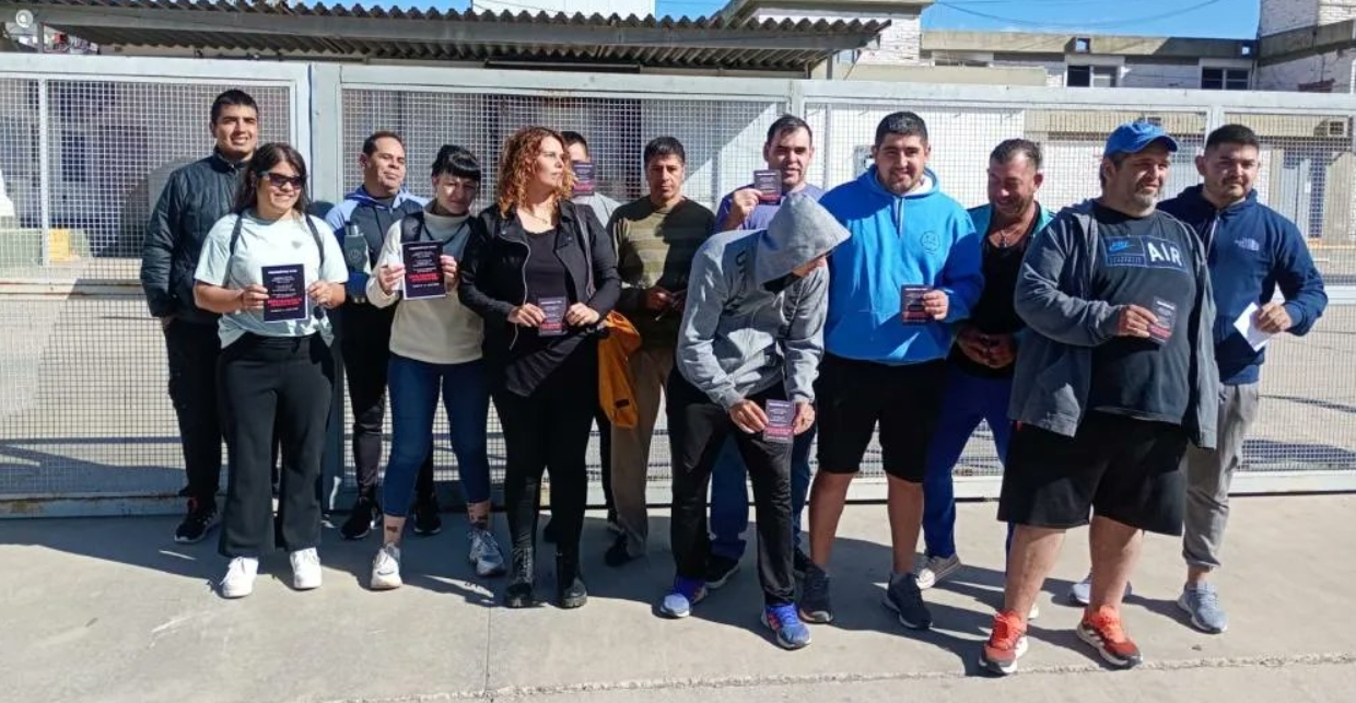 Un grupo reducido de empleados realizó una asamblea frente a la planta de Trenel para definir medidas de reclamo.