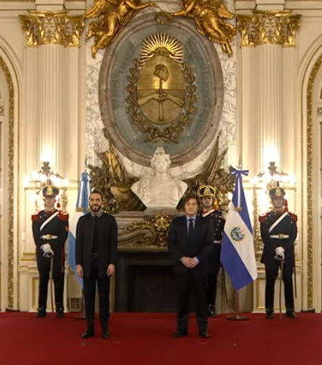 Tras la visita a Plaza San Martín, Bukele se dirigió hacia la Casa Rosada, donde Milei lo recibió minutos antes de las 15:30. Ambos líderes posaron para las fotos oficiales antes de comenzar la audiencia privada.
