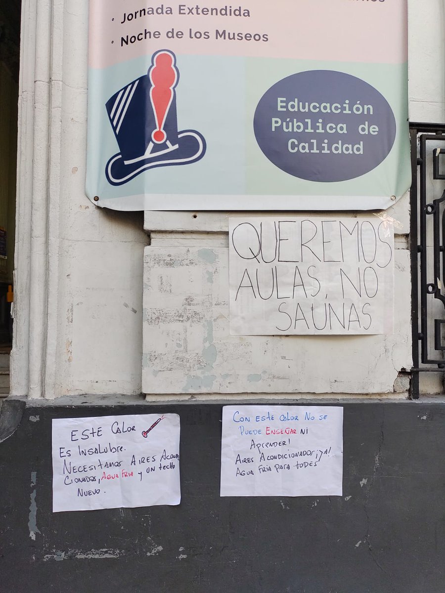 Desde el Ministerio de Educación permiten suspender las clases sólo si hay cortes de luz, por eso desde la semana pasada hay continuas notificaciones desde el colegio, ubicado en Chacabuco al 922 en el barrio de San Telmo, a las familias para avisar si hay o no clases. “