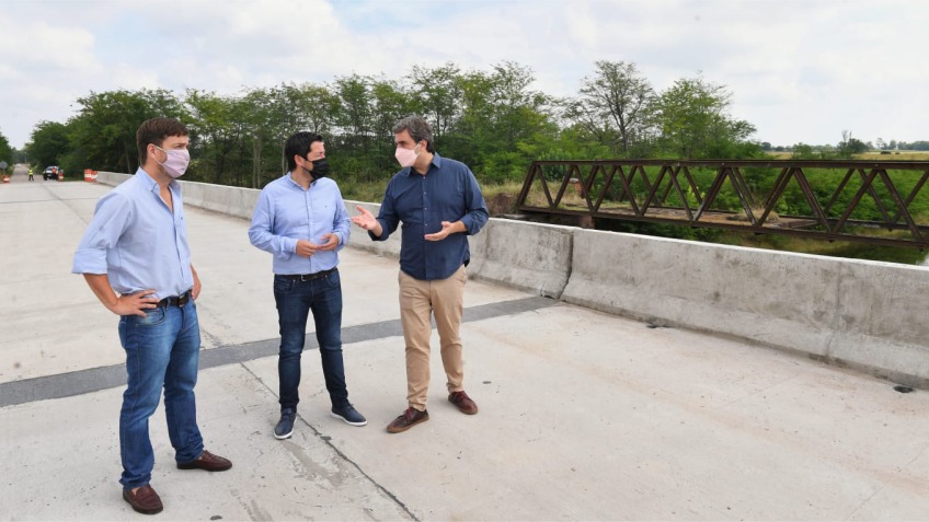 El Intendente de Luján Leonardo Boto junto a su par de Mercedes, Juan Ignacio Ustarroz, y el Ministro de Infraestructura de la Provincia, Leonardo Nardini, dejaron habilitado el nuevo puente de la localidad de Olivera.
