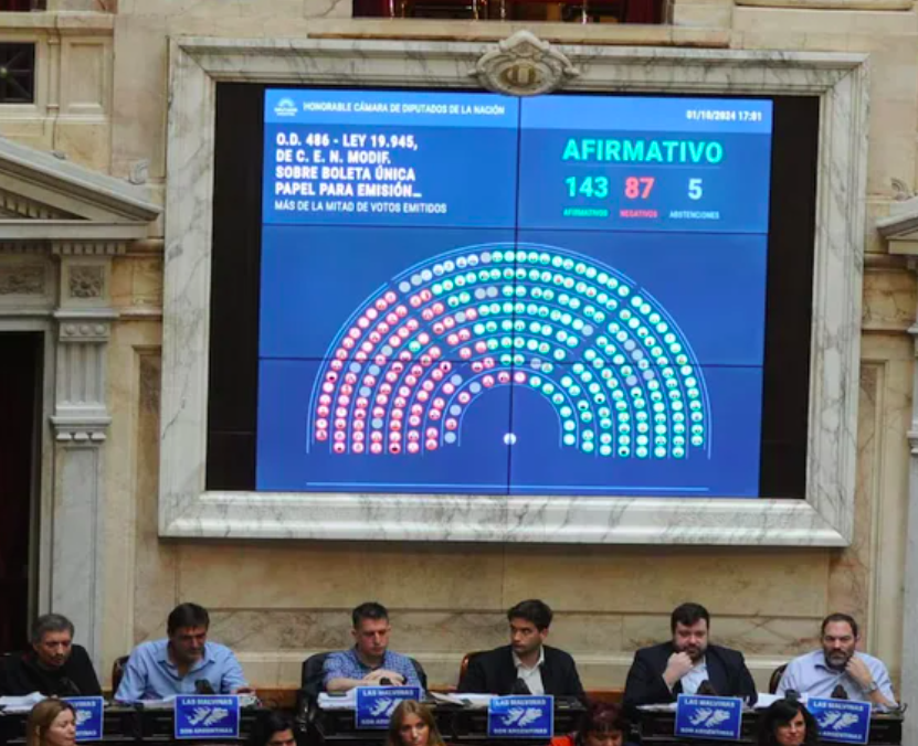 La Cámara de Diputados convirtió en ley el proyecto de Boleta Única de Papel (BUP) para las elecciones nacionales, que se implementará en los comicios intermedios de 2025. La iniciativa, apoyada por partidos como La Libertad Avanza, PRO y la UCR, fue aprobada con 143 votos a favor y 87 en contra.