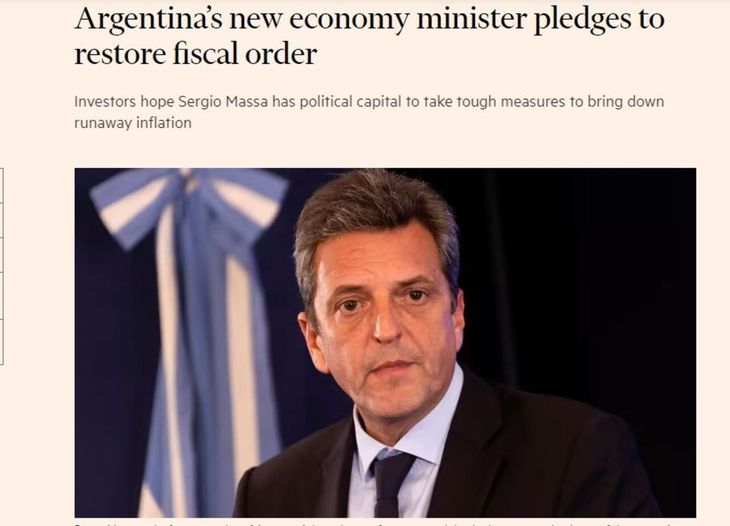 «La pobreza es alta y se espera que el país entre en una breve recesión con una contracción en el tercer trimestre de este año. En un intento por contener una crisis económica en toda regla, (Alberto) Fernández decidió instalar a (Sergio) Massa al frente del rescate de las finanzas del país, con la esperanza de dar tranquilidad a los inversionistas y al público», agrega el FT.