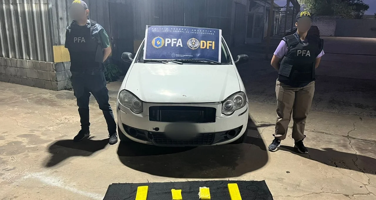 Con autorización judicial, los policías requisaron el automóvil y hallaron dos ladrillos y medio con sustancia vegetal, que tras las pruebas de campo resultó ser más de 2,5 kilos de marihuana.