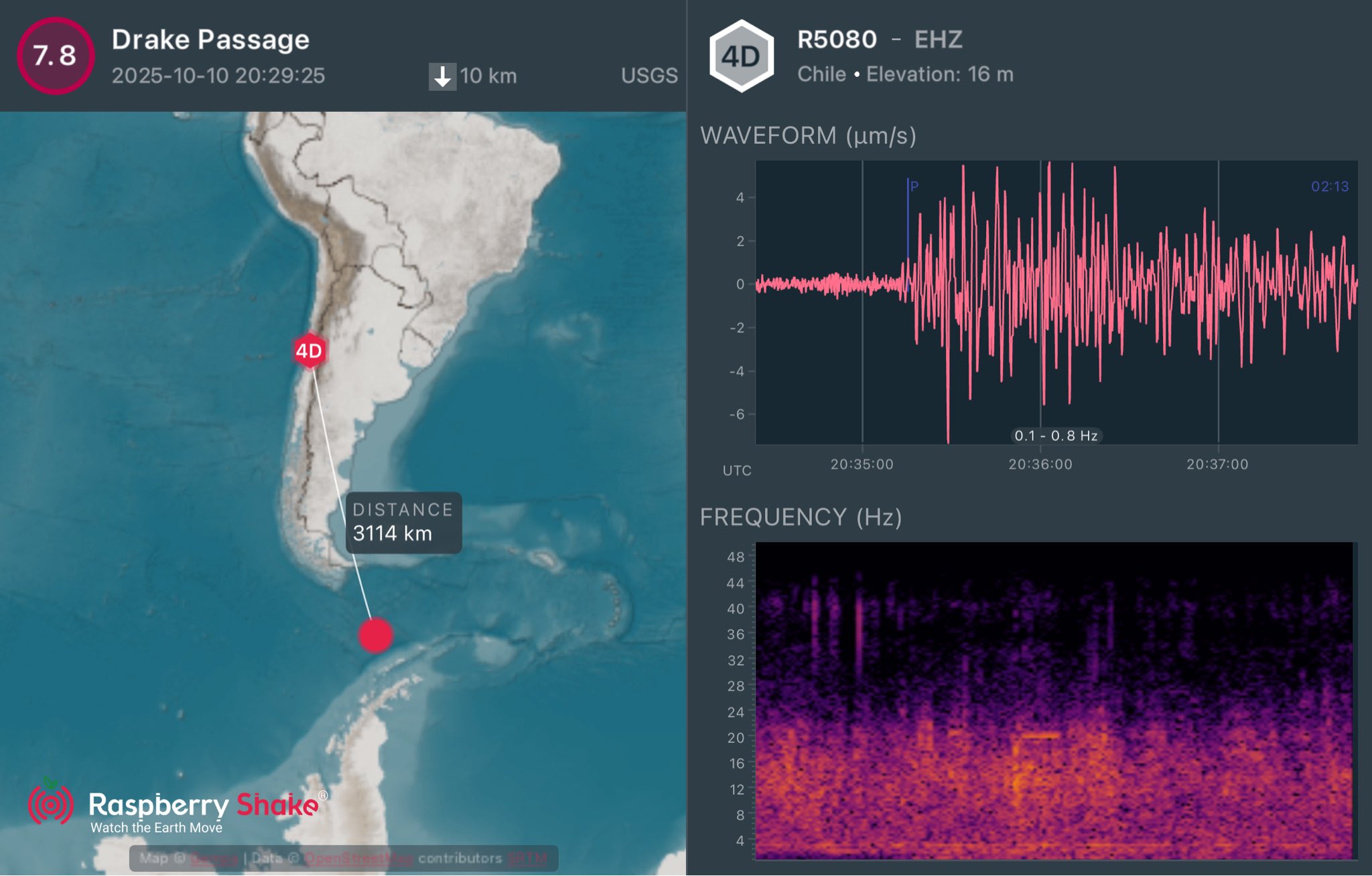 - Se registró un sismo de magnitud 7,8 en el Atlántico Sur, a aproximadamente 720 km de Ushuaia.
