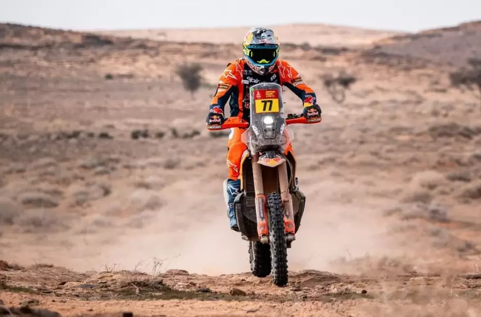 El piloto argentino Luciano Benavides, del equipo KTM, finalizó en el quinto lugar de la etapa 7 del Rally Dakar y continúa ocupando la misma posición en la clasificación general. El tramo cronometrado de 419 kilómetros en Al Duwadimi representó un desafío que Benavides compuso en 4 horas, 17 minutos y 57 segundos, quedando a 7 minutos y 24 segundos del australiano Daniel Sanders, quien se adjudicó la etapa y lidera la general.