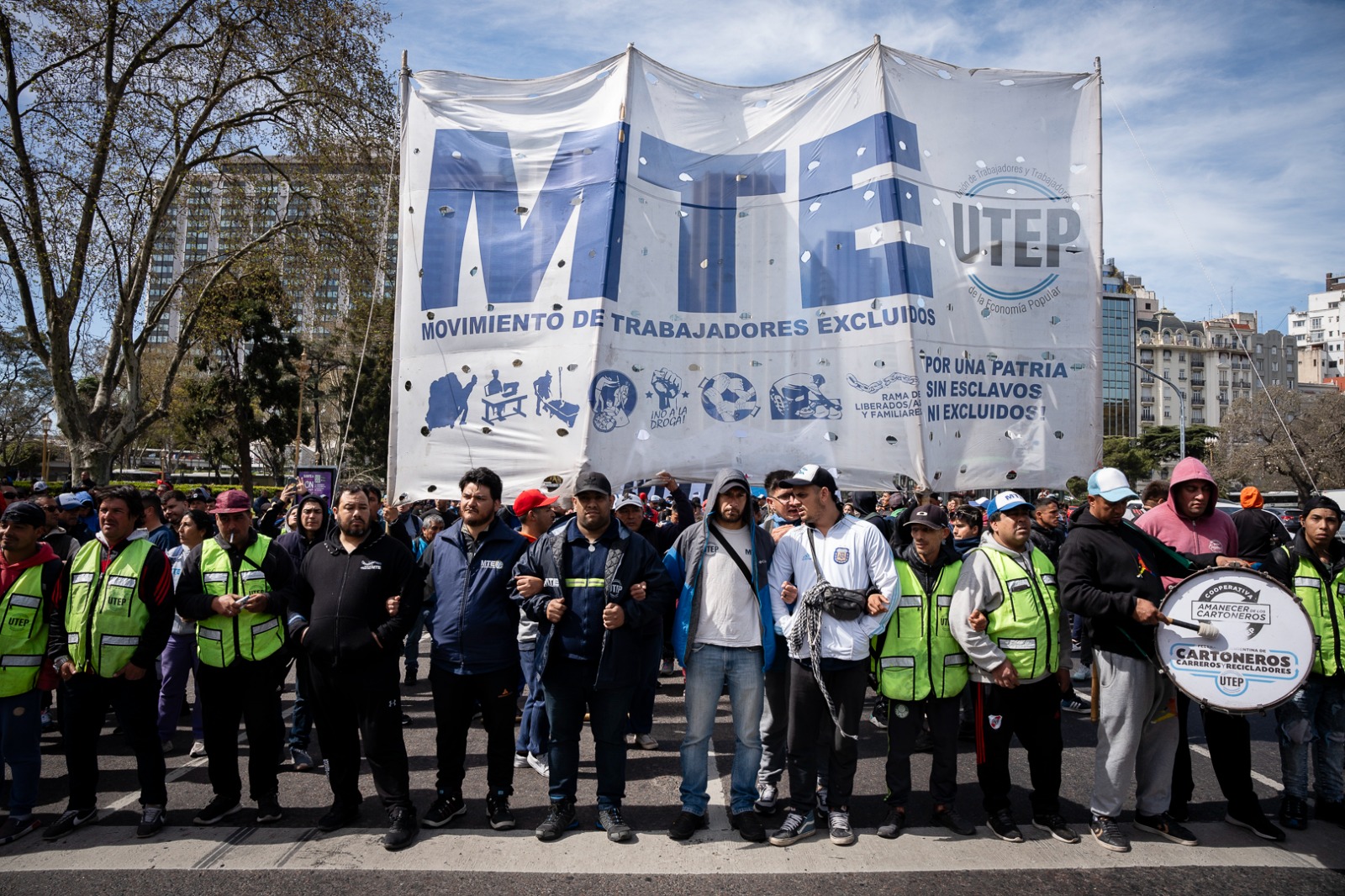 - La protesta reclama la reversión del cierre del programa Volver al Trabajo, que afecta a 951.871 trabajadores de la economía popular con un ingreso de $78.000 mensuales congelado desde diciembre de 2023.