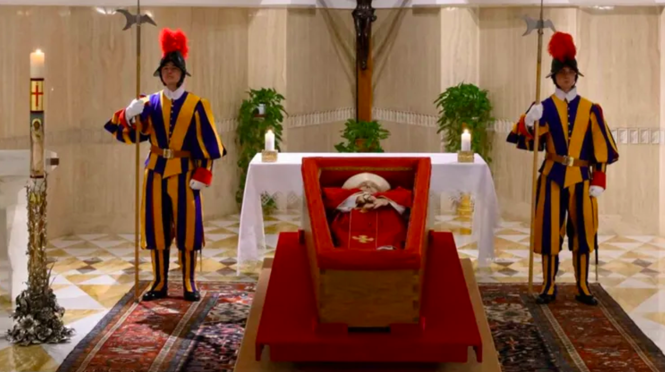 - El ataúd del papa Francisco fue dispuesto en la Capilla de Santa Marta, sin catafalco.