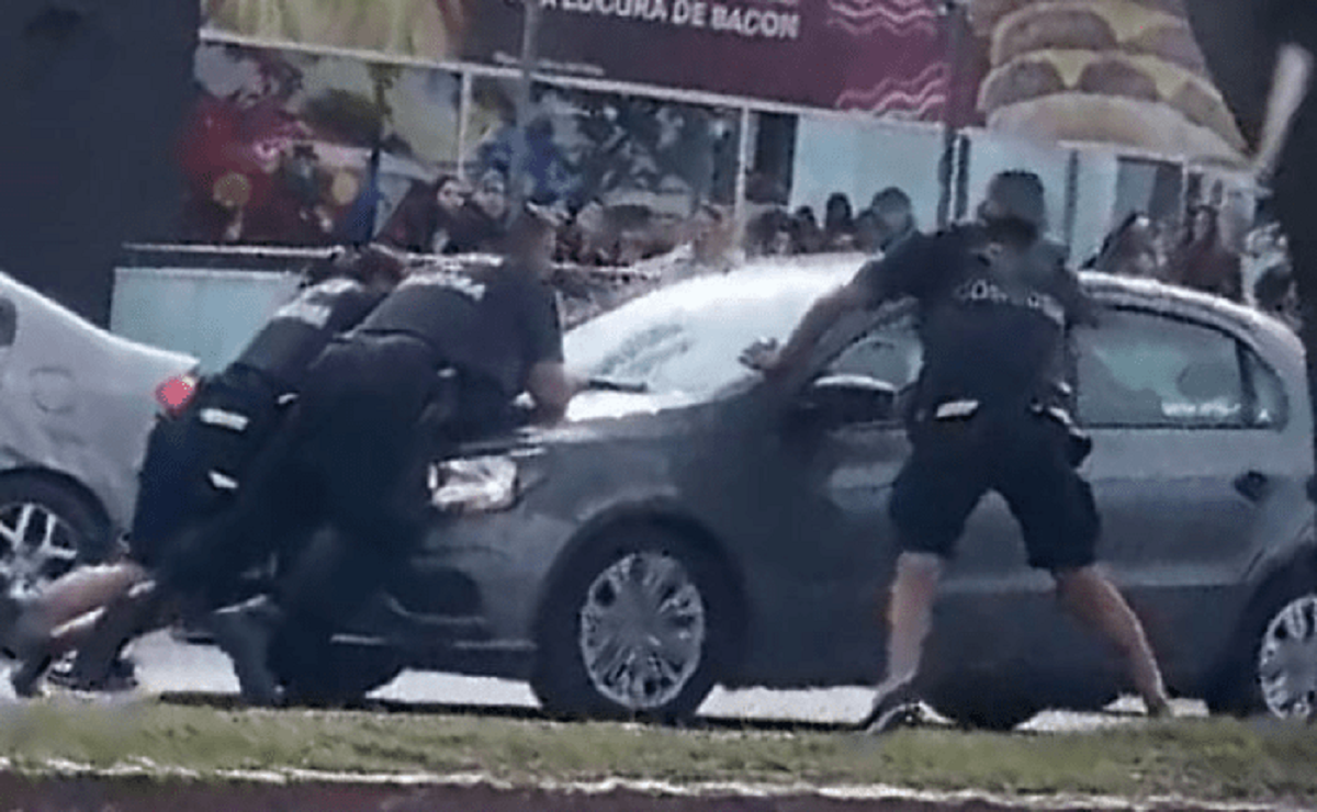 «¡Frená! ¡Frená, hijo de puta!», gritó uno de los uniformados, que terminó lesionado en una de sus piernas cuando el auto frenó. El efectivo comenzó a darle puñetazos al parabrisas hasta romperlo.