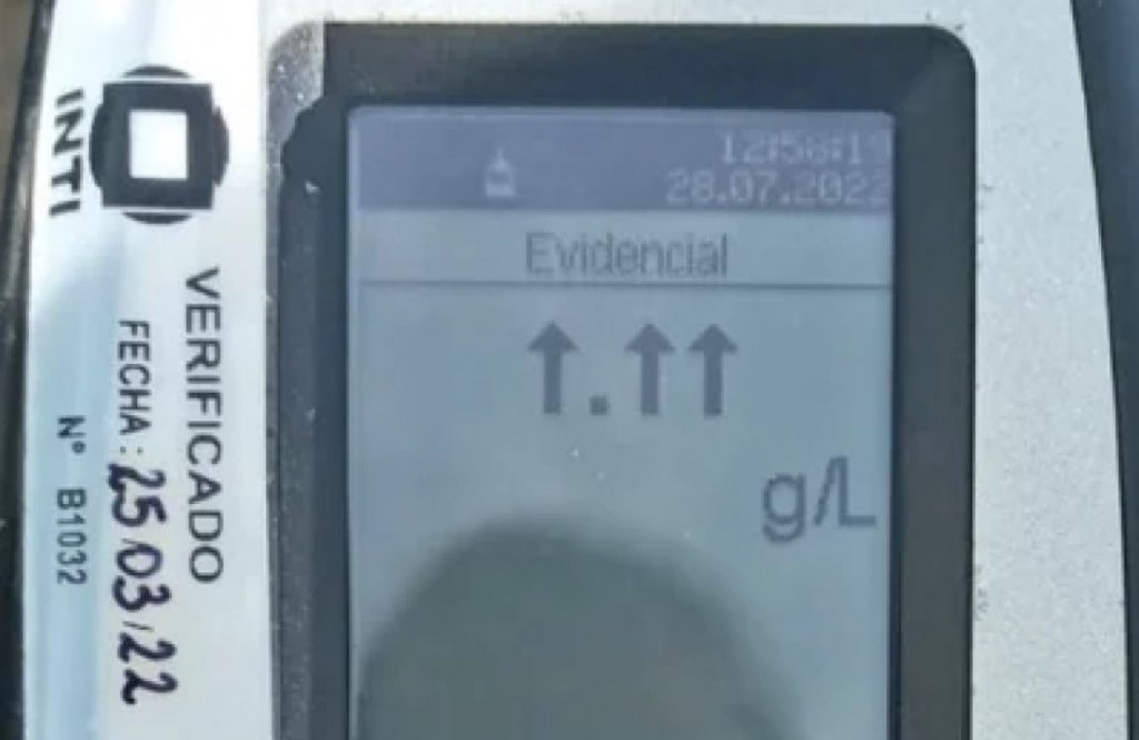 Los inspectores mostraron como el alcoholímetro mostraba tres líneas para arriba, lo que significa un nivel superior a los 3 gramos de alcohol en sangre.