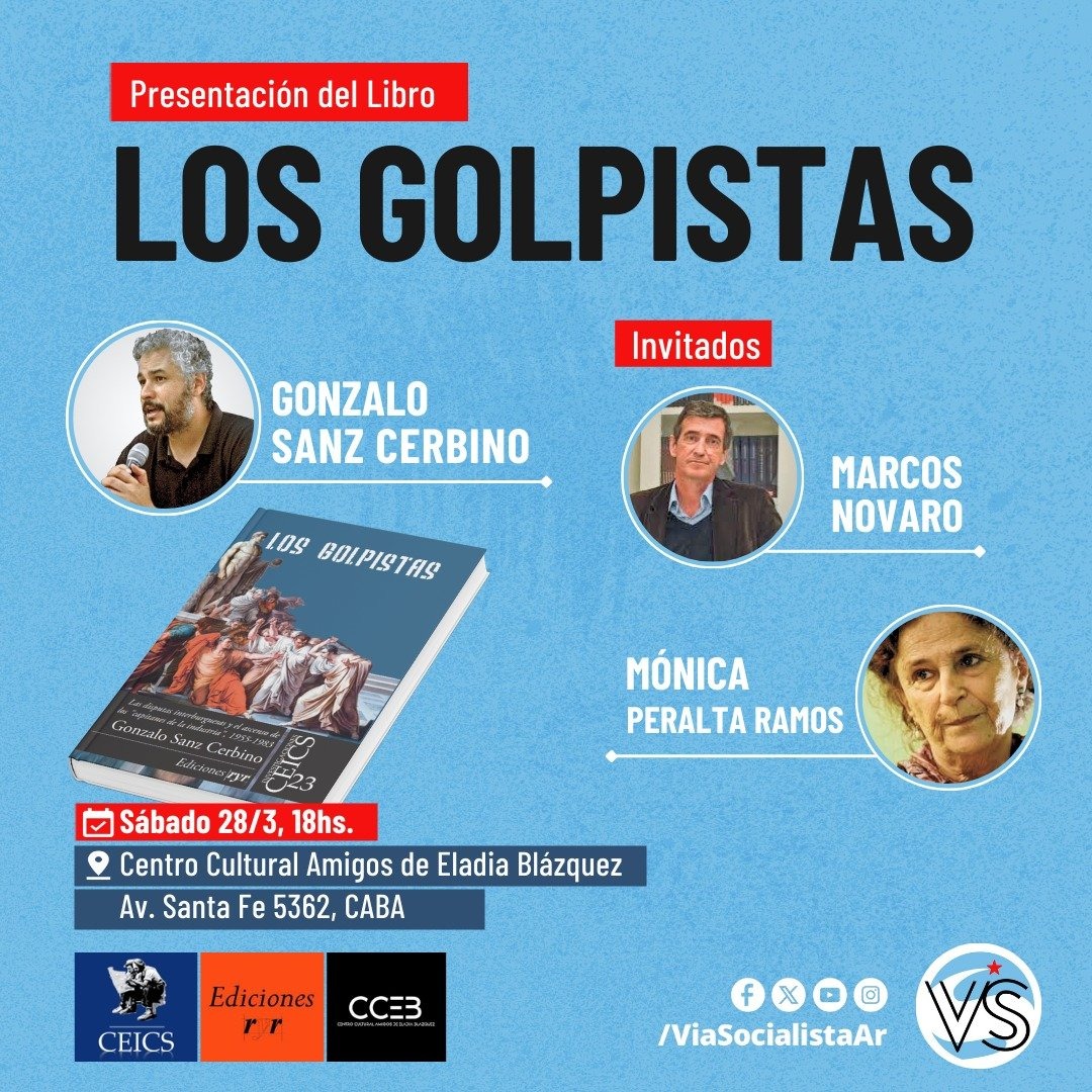En el marco del 50º aniversario del golpe de Estado de 1976, se presentará el libro Los golpistas. Las disputas interburguesas y el ascenso de los «capitanes de la industria» (1955-1983), del investigador Gonzalo Sanz Cerbino, una obra que propone revisar el rol de la burguesía en uno de los períodos más violentos de la historia argentina reciente.