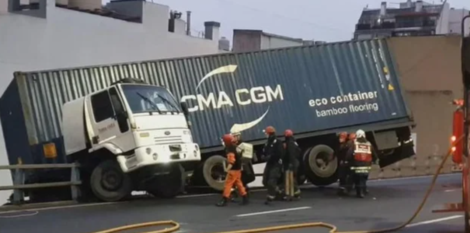 El conductor de 40 años fue rescatado y trasladado al hospital Argerich en estado de shock: “Nuestros equipos han sacado de la situación al conductor, está bien, está lucido, pero el camión se puede caer”, indicó Alberto Crescenti.